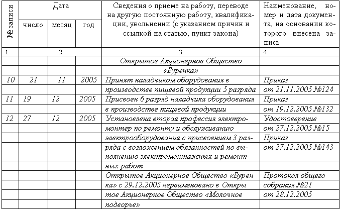 Внесение записи о переименовании предприятия в трудовую книжку - Трудовая книжка